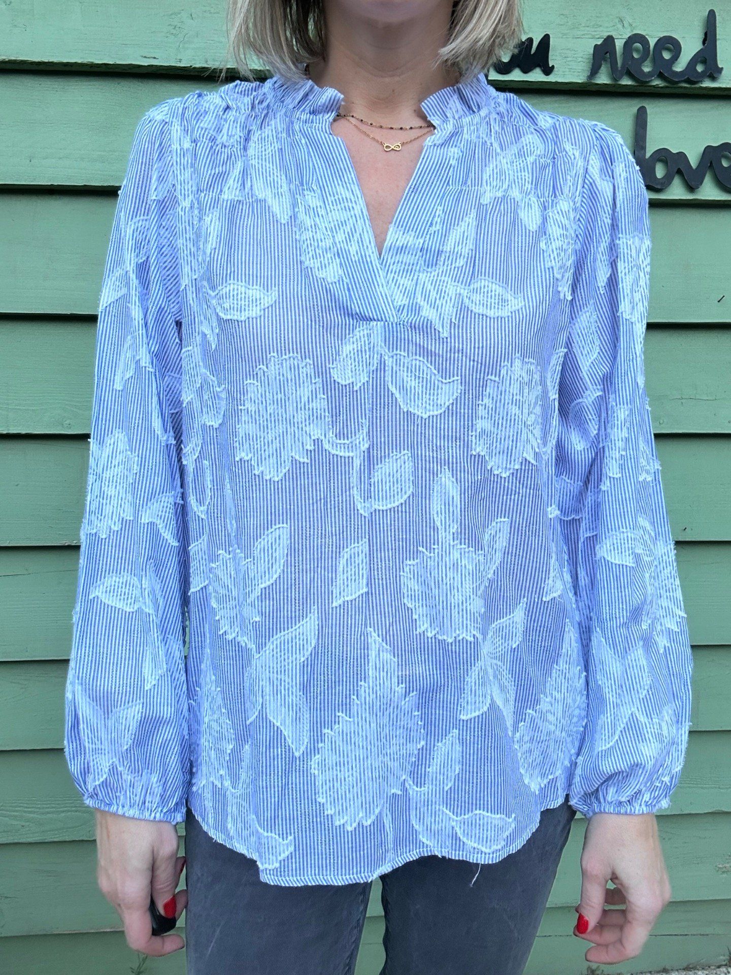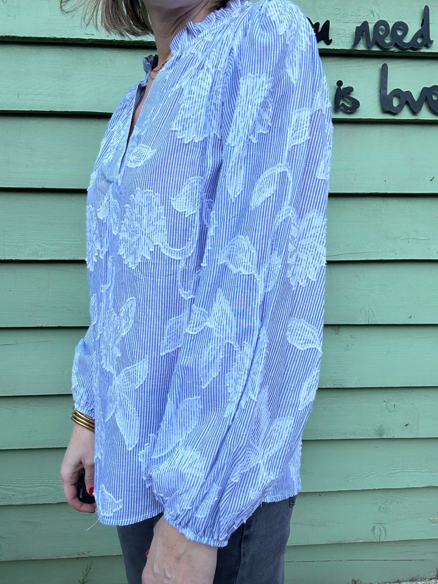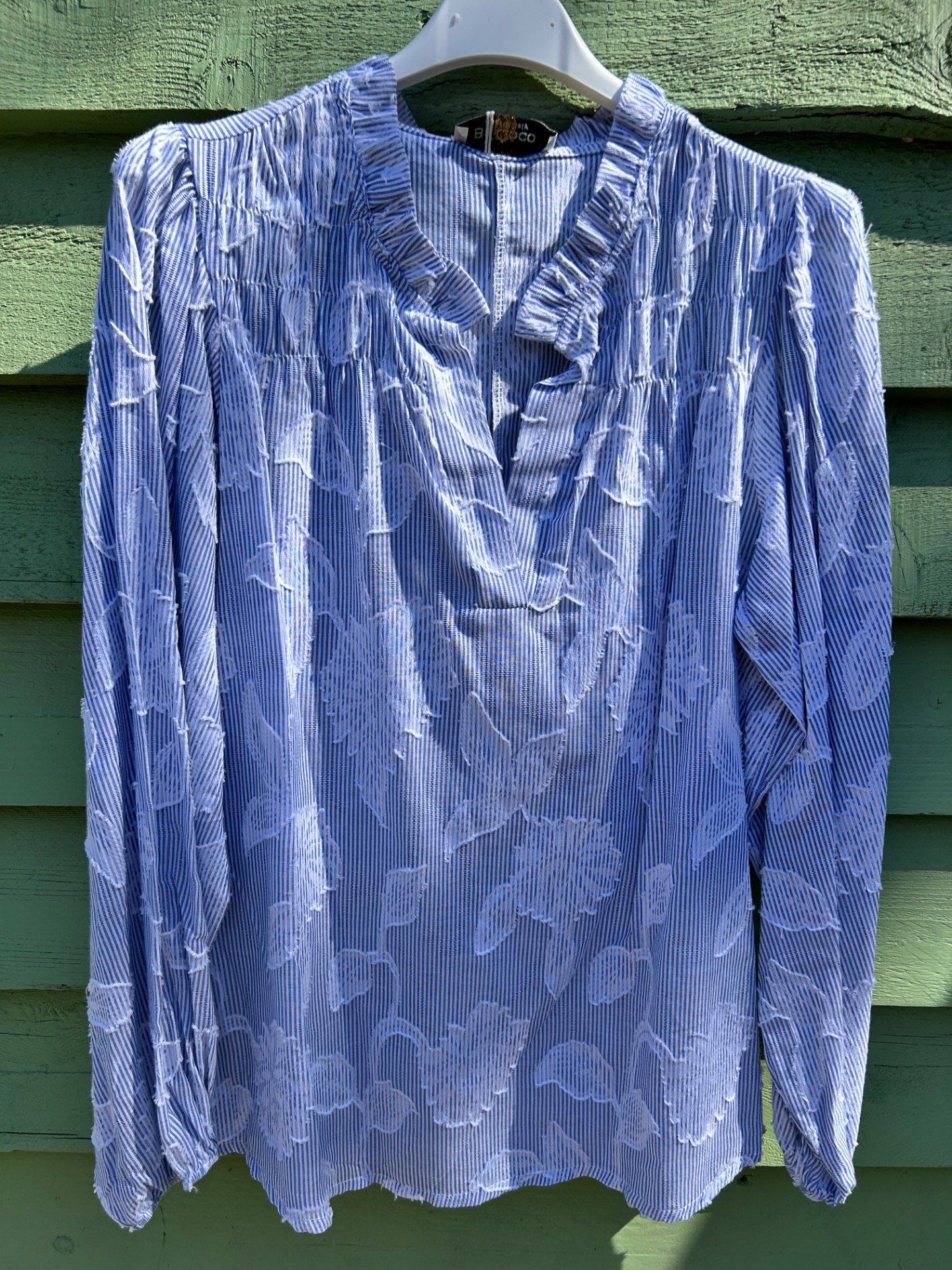 Blouse bleue et blanche