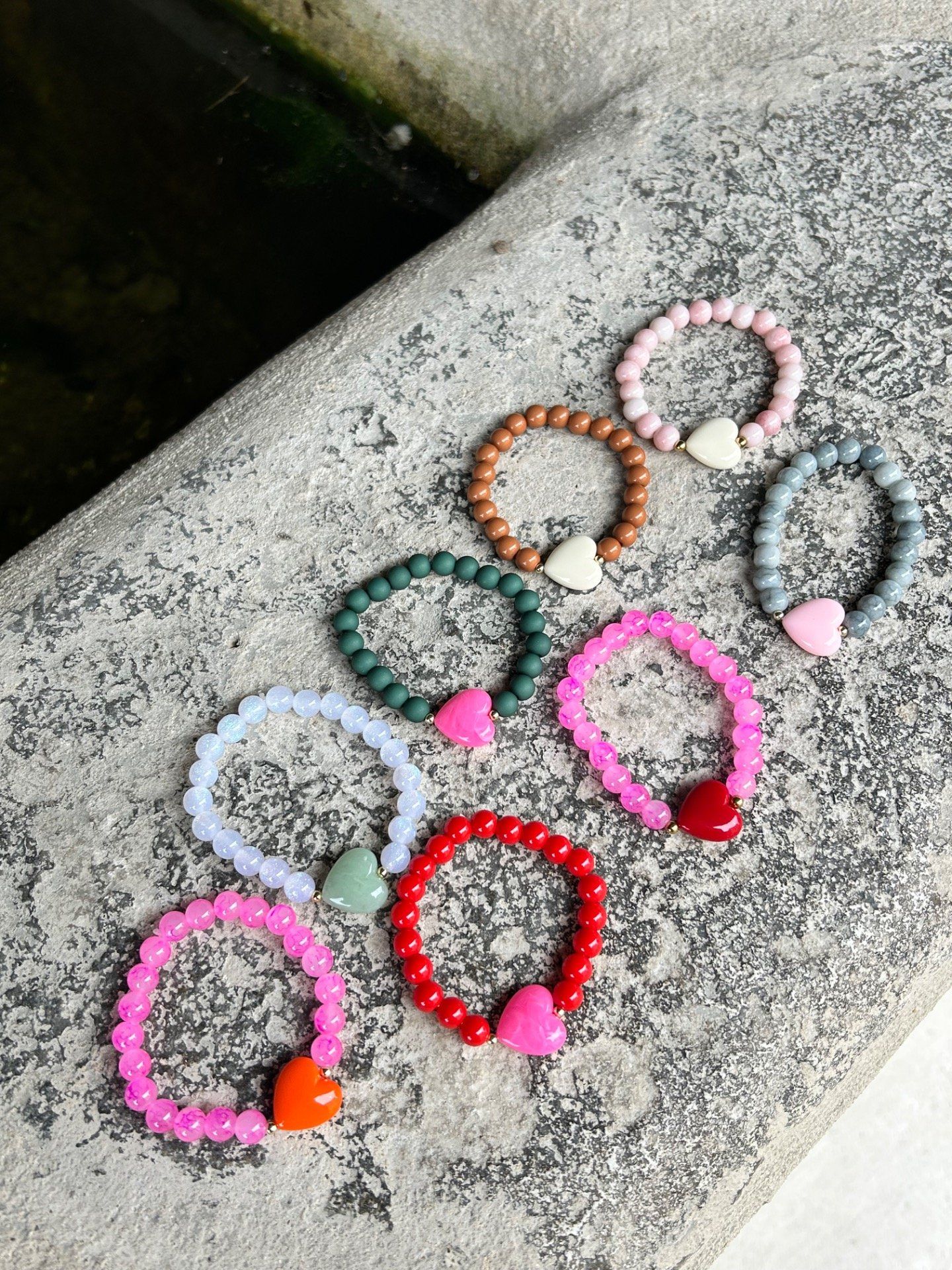 Perles rondes en verre ou en résine et cœur ❤️
